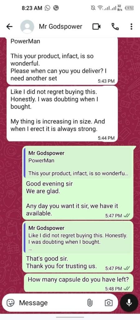 …Secure Your Reserved POWERMAN OIL & SUPPLEMENT at N35,000 + Free Shipping + Free Delivery.